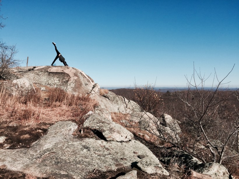 *This photo was taken on Beacon Mountain in New York. My friends and I hiked all the way to the top of the fire tower for the 360 degree view point. This giant rock was right before the tower. The view, the hike, the whole experience was breathtaking. I had to make yoga a part of the adventure.